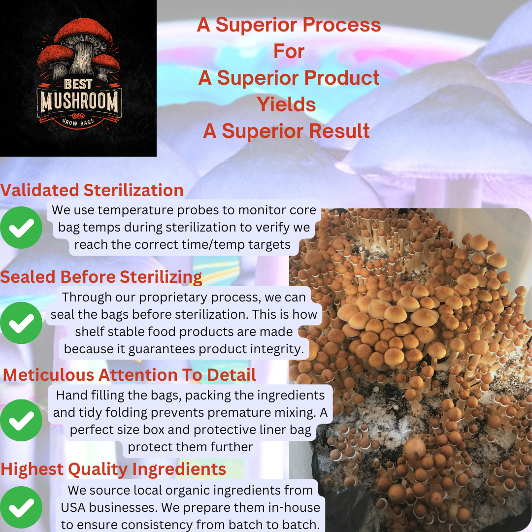 We didn’t just slap a label on a bag and call it “sterile.” Every grow bag we make is the result of obsessive testing, precision sterilization, and genuine passion for the craft of mushroom cultivation.